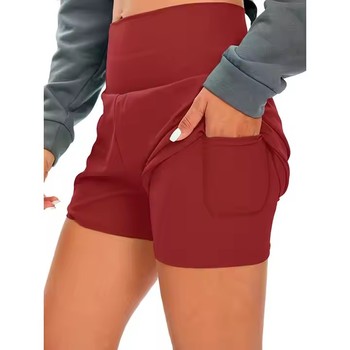 شورت رياضي مريح 2 في 1 للنساء عالي الجودة ، شورت ركض مريح ، نمط جيد التهوية ، إغلاق برباط ، شعار مخصص ، كشكشة